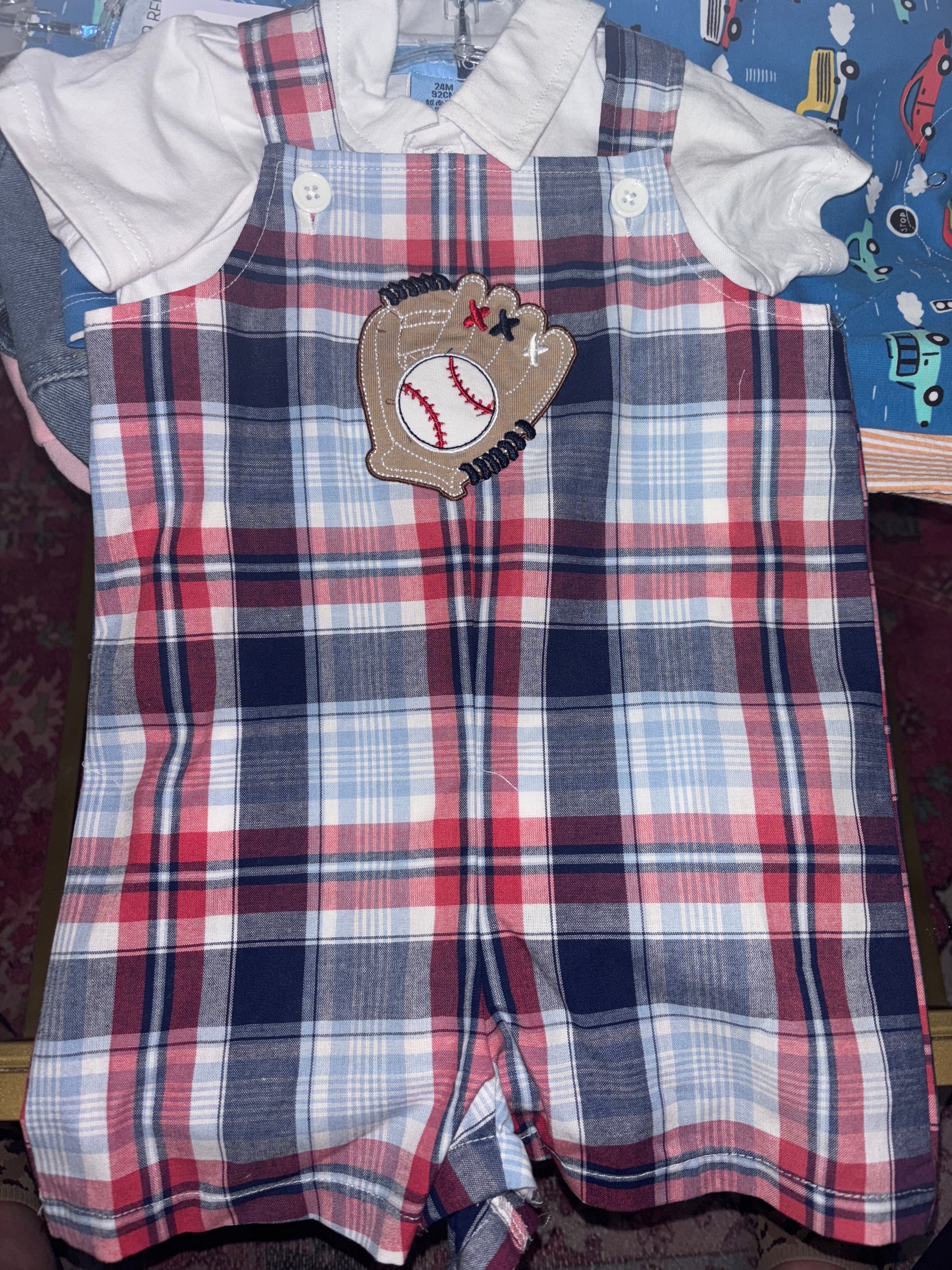 Baseball shirt and overall shorts