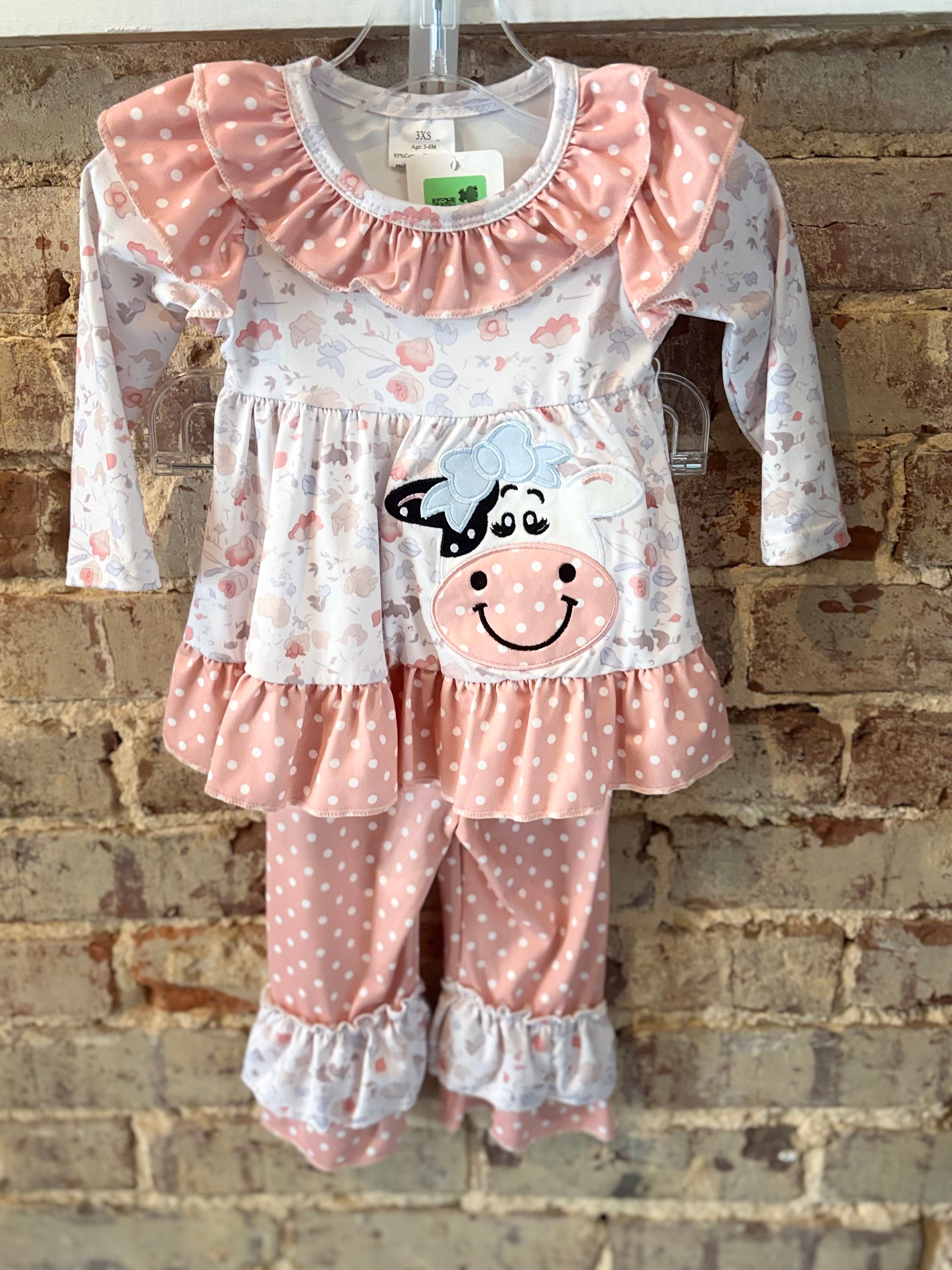 Little Girls Pink And Blue Two Piece Cow Set