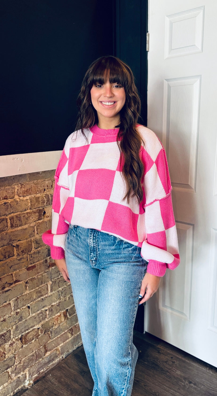 Pink Dreams Checkered Sweater